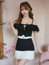 3. [an/アン] 高級 肩出し 二の腕カバー バストカット フリルチュール リボン プリーツ セットアップ 谷間魅せ フレアミニドレス