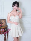 女性らしさを引き立てる♡ [an/アン] 高級 キャミソール ジップデザイン ショルダーリボン ウエストベルト チェック柄 プリーツ セットアップ フレアミニドレス