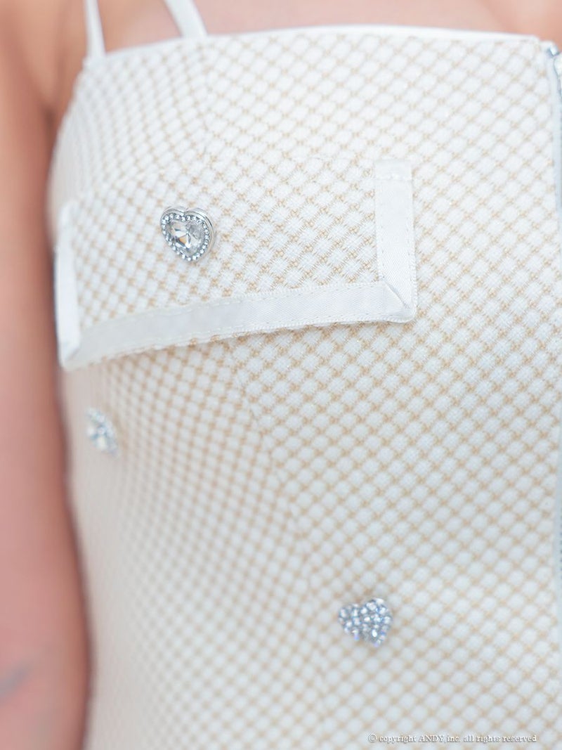 3. [an/アン] 高級 キャミソール ジップデザイン ショルダーリボン ウエストベルト チェック柄 プリーツ セットアップ フレアミニドレス
