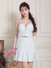 高級キャミソールセットアップフロントジップビジューリボンツイードプリーツ谷間魅せフレアミニドレス