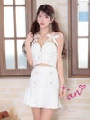 高級 キャミソール リボン パール セットアップ プリーツ ジップデザイン フレアミニドレス