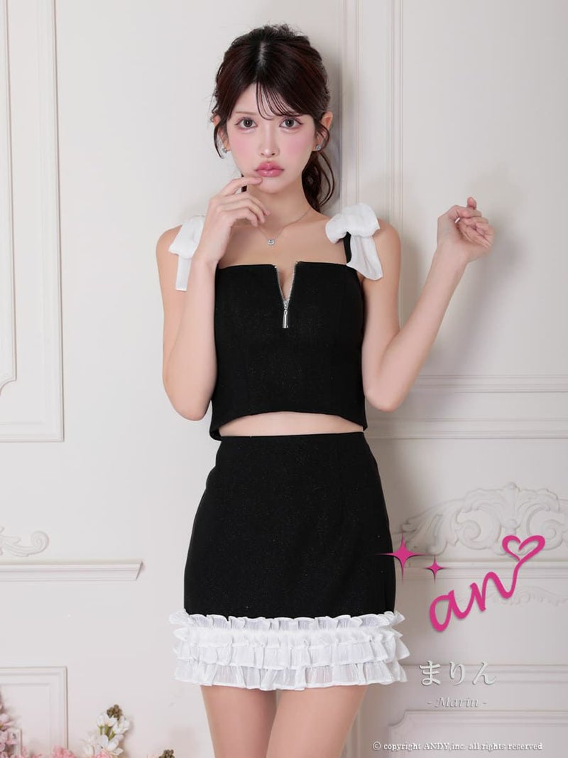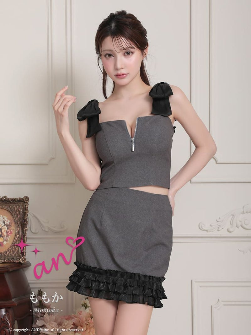 キャバドレス an アン ノースリーブ ジップデザイン 袖あり 2way リボン フリル セットアップ タイトミニドレス
