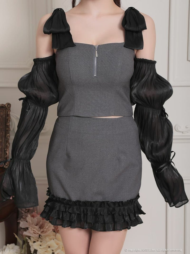 ガーリーなセットアップ★ [an/アン] 高級 ノースリーブ ジップデザイン 袖あり 2way リボン フリル セットアップ タイトミニドレス