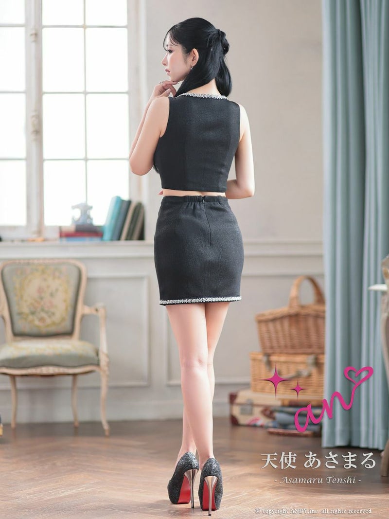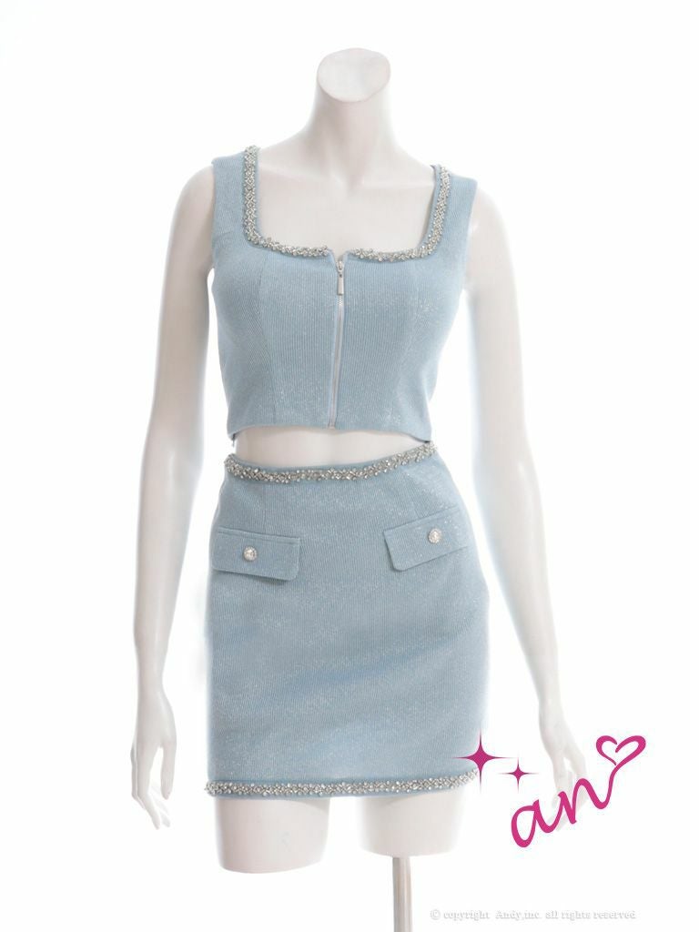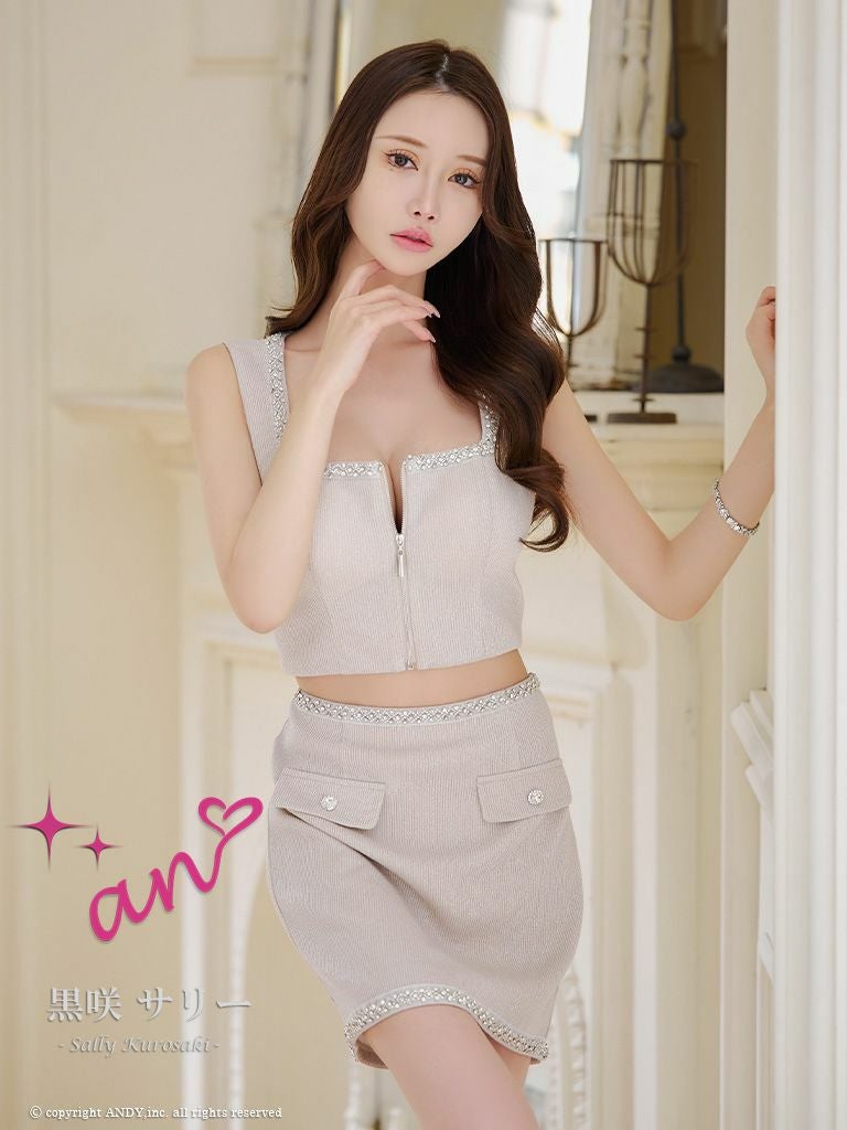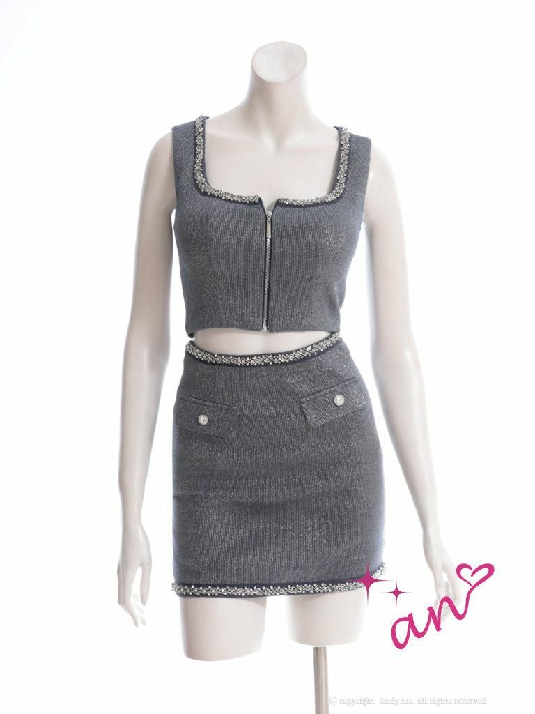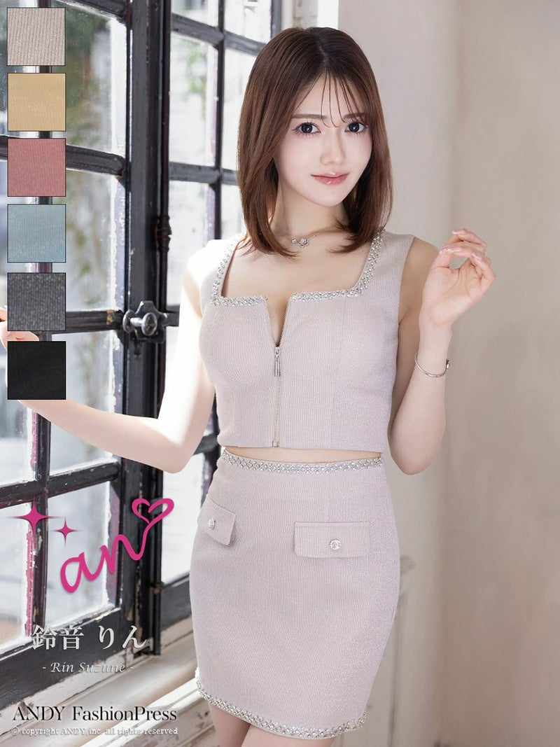 ビジューがとっても大人っぽい★ [an/アン] 高級 ノースリーブ ジップ ビジュー ポケット セットアップ タイトミニドレス