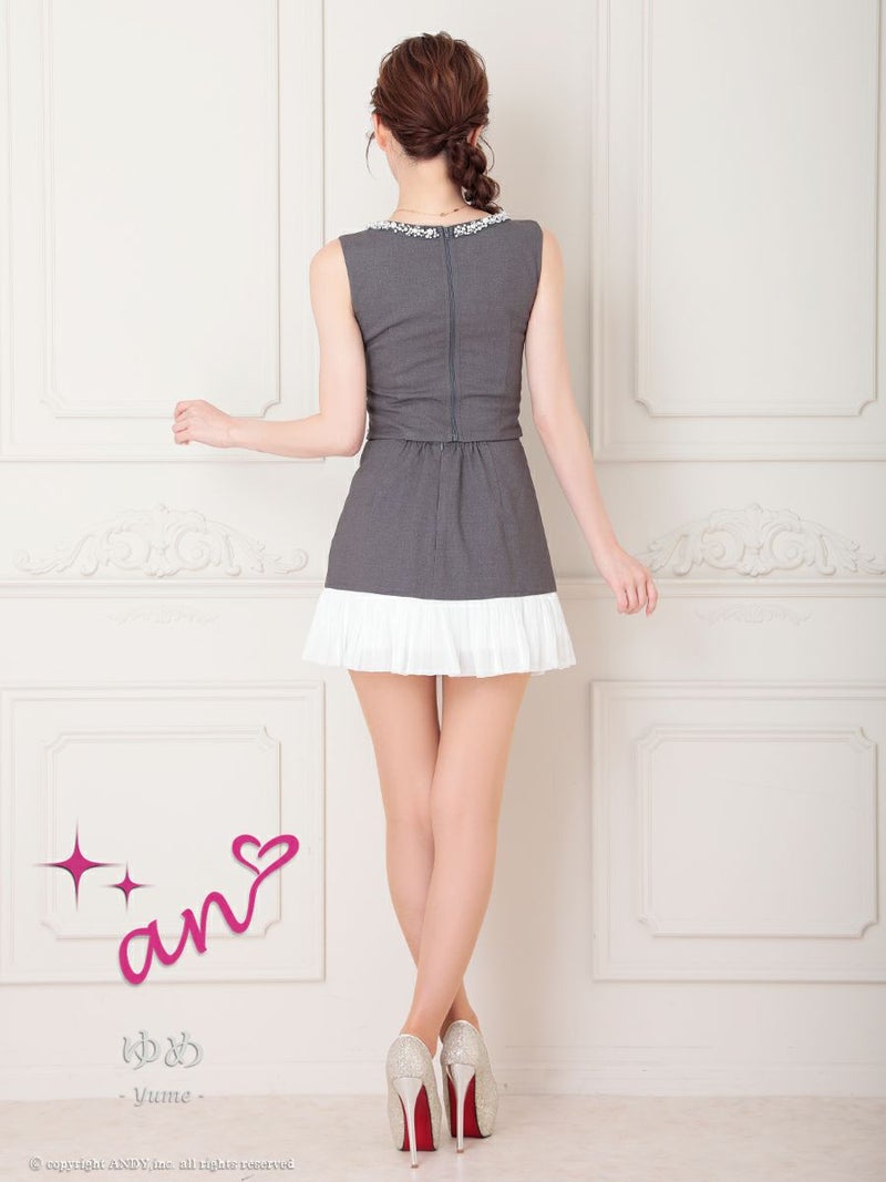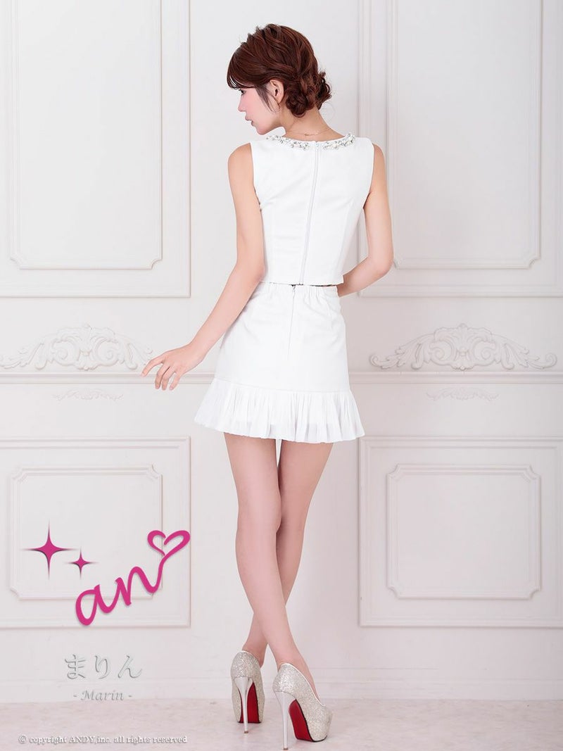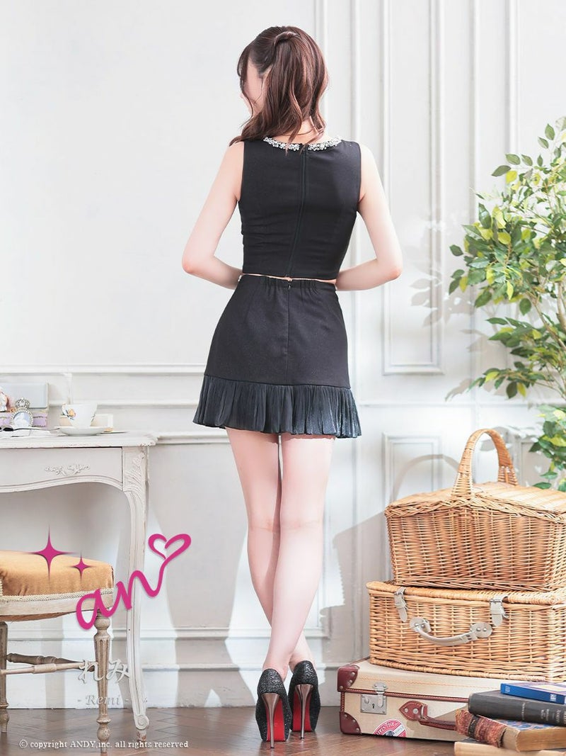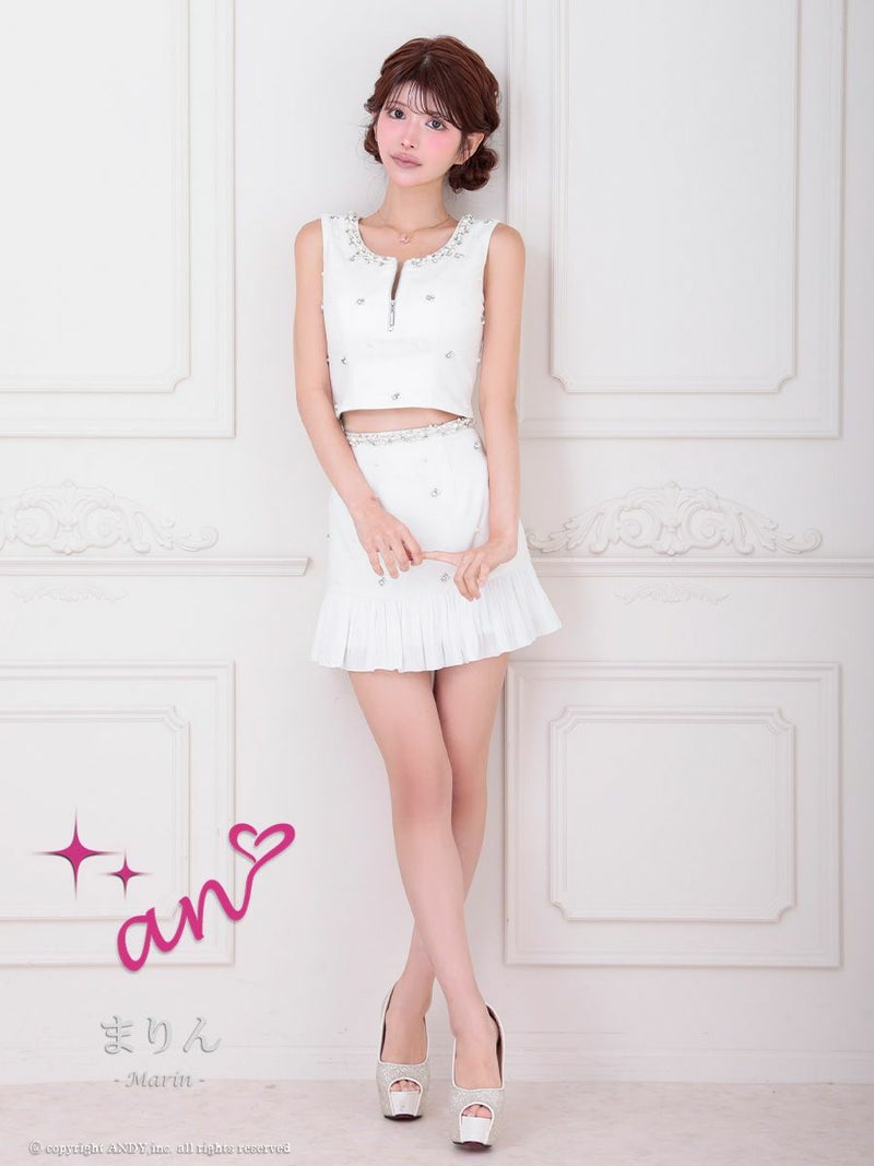 キャバドレス Andy アンディ 高級 ノースリーブ フロントジップ ビジューパーツ セットアップ 谷間魅せ タイトミニドレス