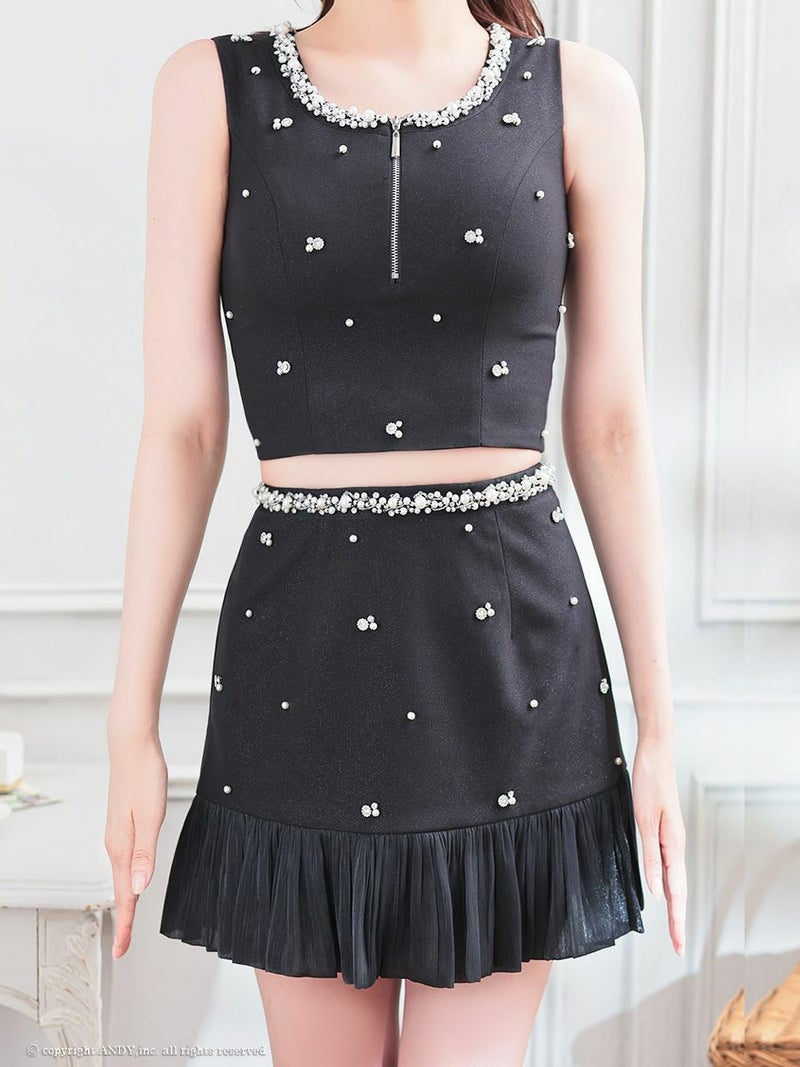たくさんのビジューで気分UP★ [an/アン] 高級 ノースリーブ フロントジップ ビジュー セットアップ 谷間魅せ タイトミニドレス