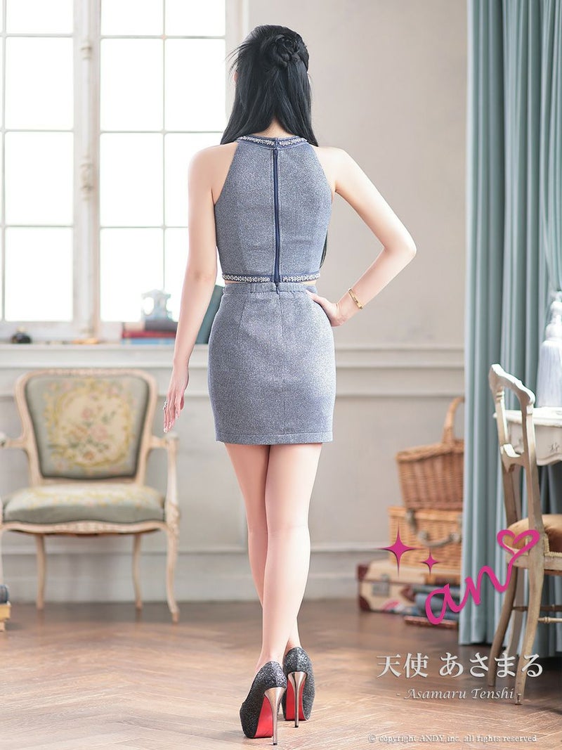4. [an/アン] 高級 ホルターネック バストカット ジップデザイン ビジュー セットアップ タイトミニドレス