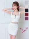 ヘルシーな肌見せのセットアップ♡ [an/アン] 高級 ノースリーブ ツイード ビジュー ジップ スクエアネック セットアップ タイト ミニドレス