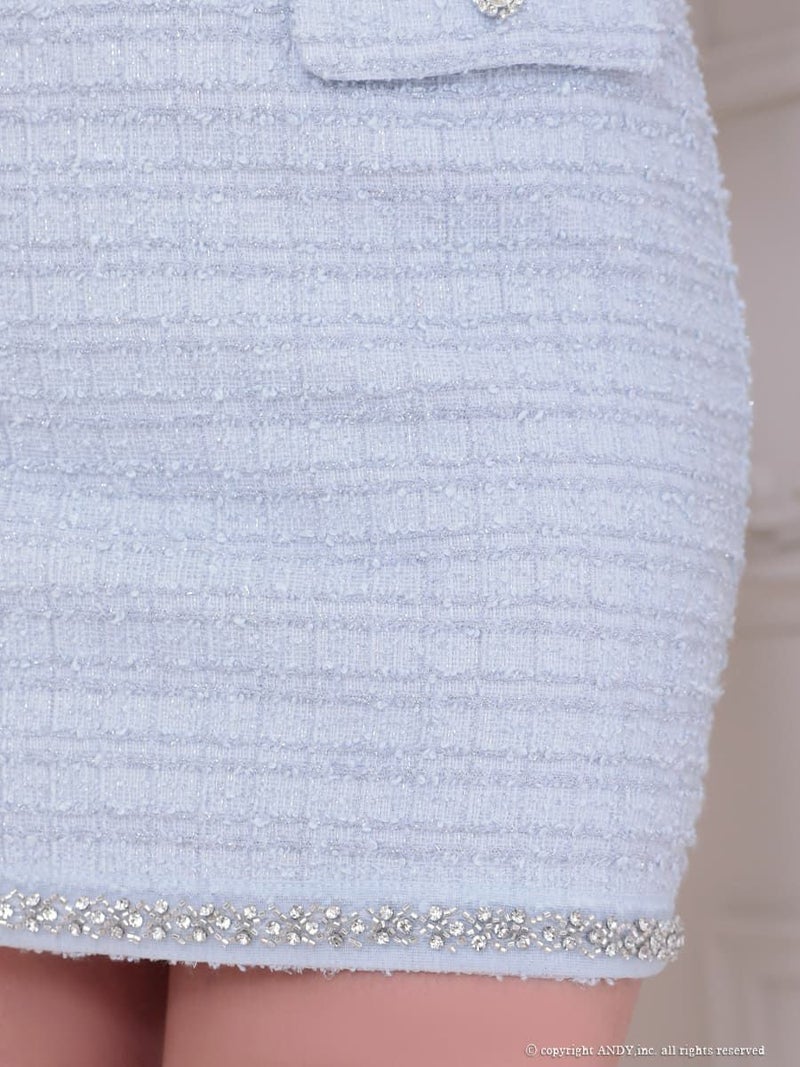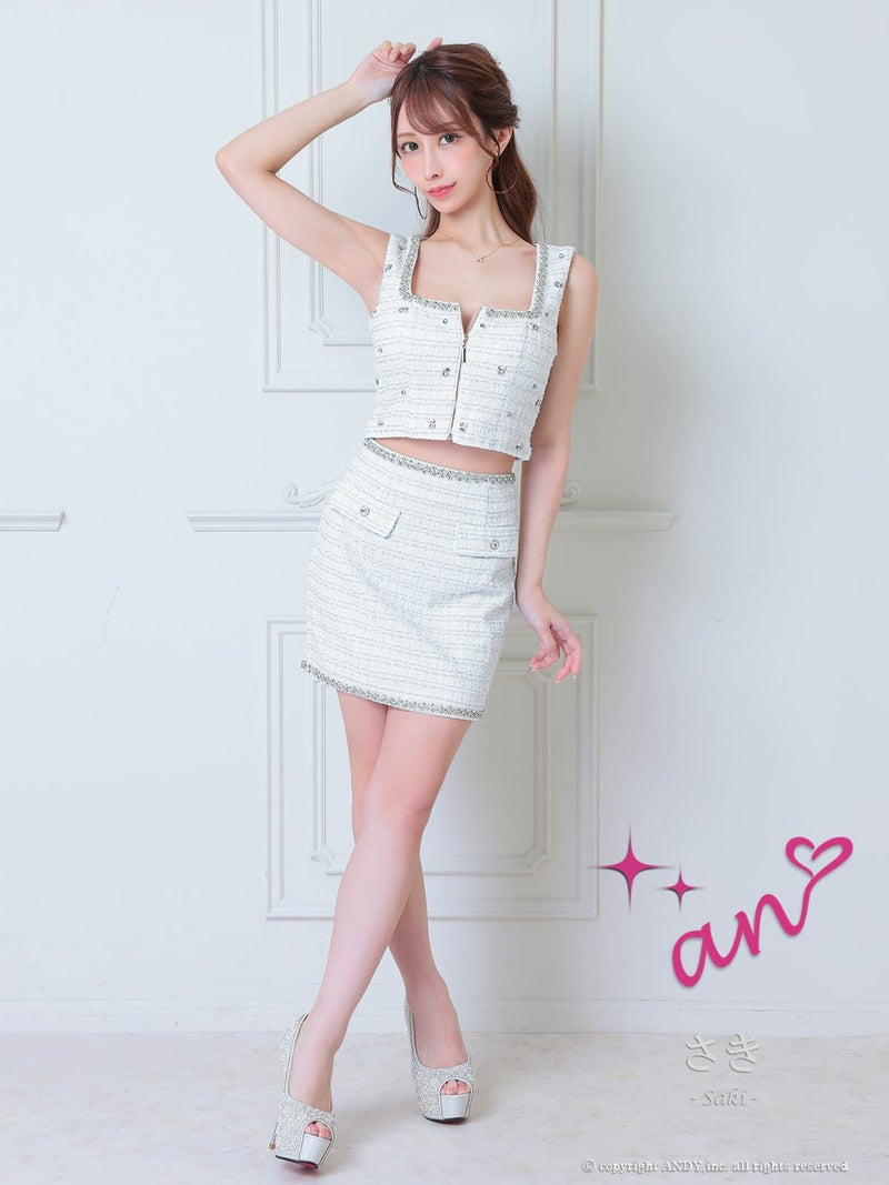 キャバドレス an アン 高級 ノースリーブ ツイード ビジュー ジップ スクエアネック セットアップ タイト ミニドレス