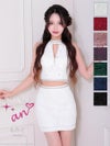 あざといセクシーさを引き出すセットアップ★ [an/アン] 高級 ノースリーブ ジップ ツイード ビジュー セットアップ タイト ミニドレス