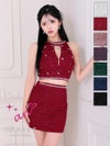 キャバドレス an アン ノースリーブ ジップ ツイード ビジュー セットアップ タイト ミニドレス