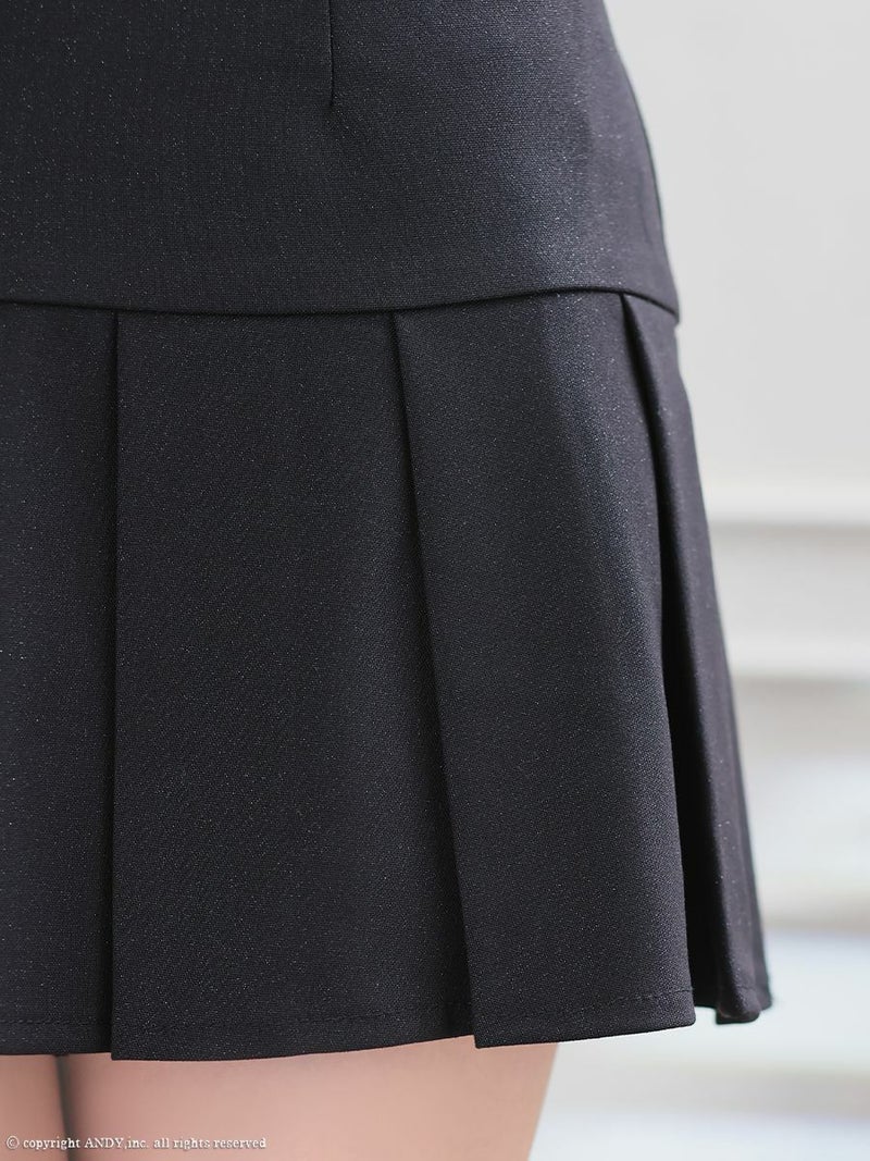 4. [an/アン] 高級 ノースリーブ ビジュー フロントジップ 谷間魅せ セットアップ プリーツ フレアミニドレス