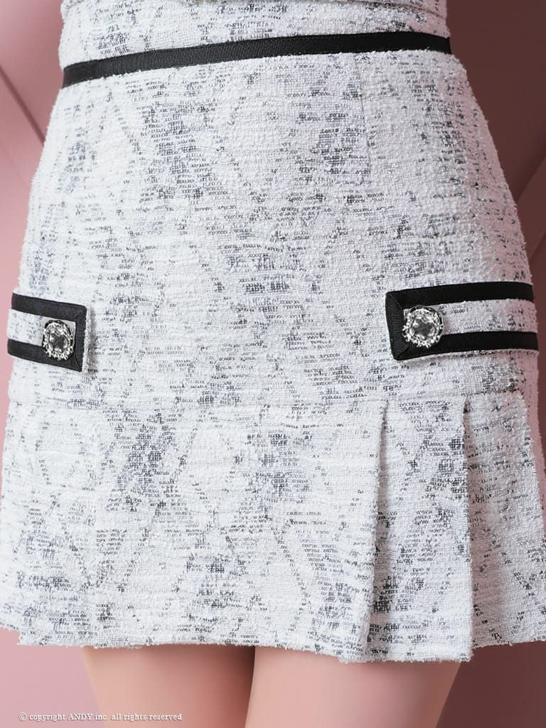 同伴にも使えるあざといデザイン★ [an/アン] 高級 袖あり チェック柄 ツイード スクエアネック ジップ セットアップ フレアミニドレス