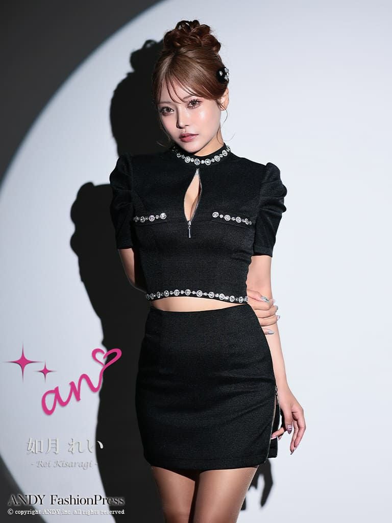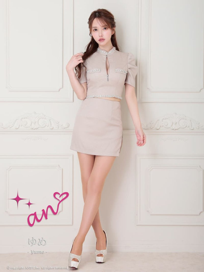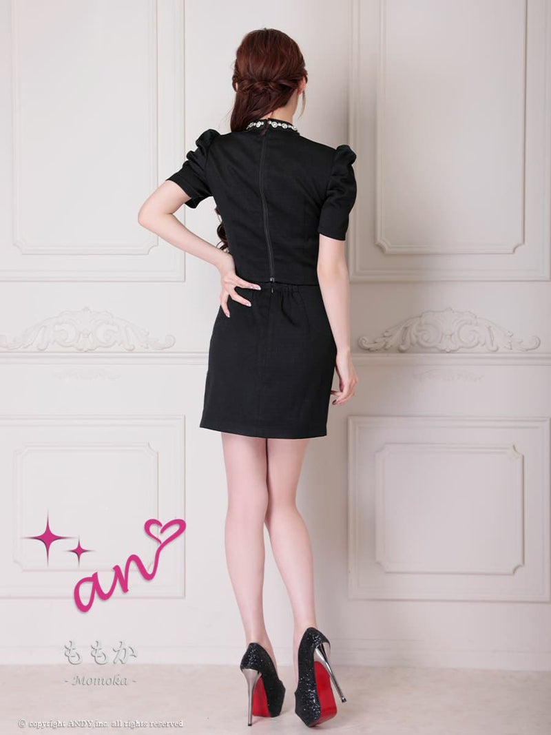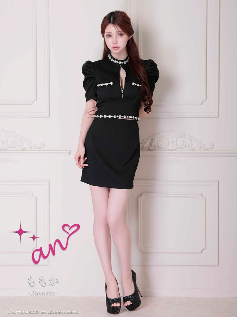 キャバドレス an アン 高級 半袖 セットアップ ジップ ビジュー ワンカラー タイトミニドレス