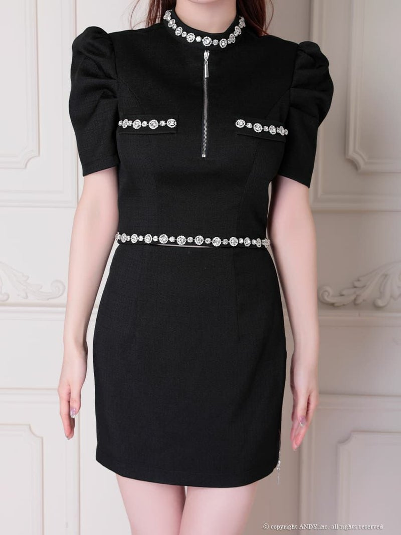 3. [an/アン] 高級 半袖 セットアップ ジップ ビジュー ワンカラー タイトミニドレス
