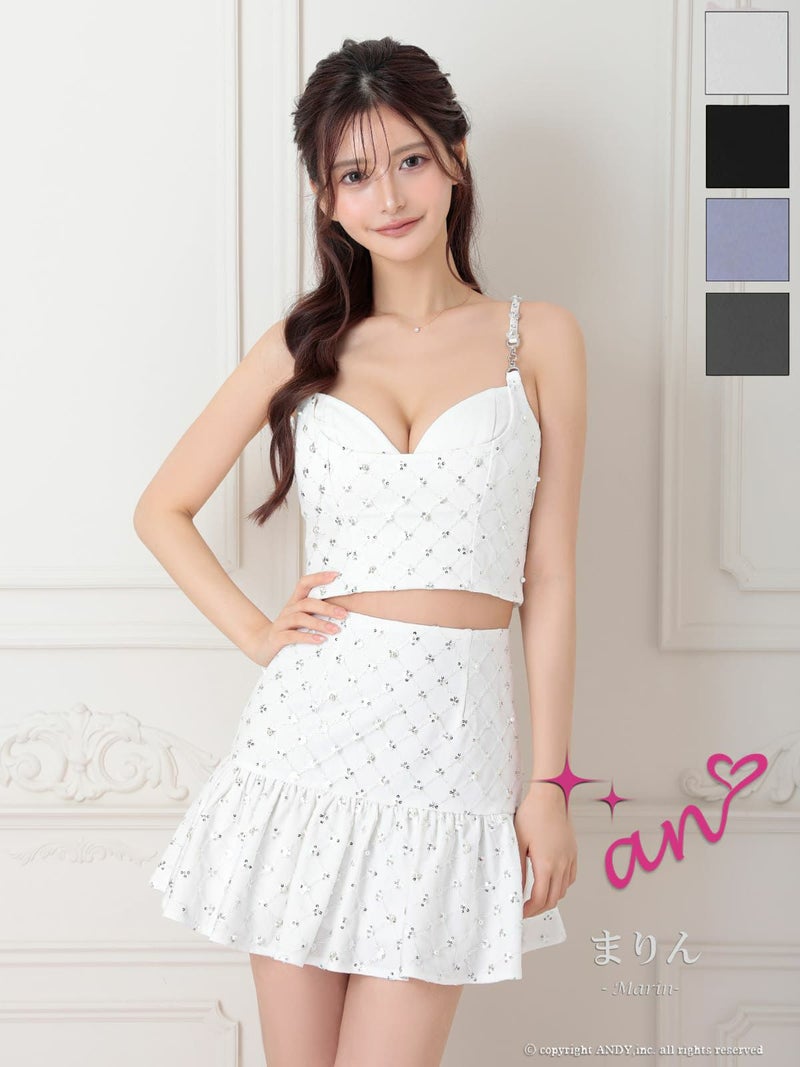 キャバドレス an アン 高級 キャミソール セットアップ バイアスチェック ビジュー ワンカラー フレアミニドレス