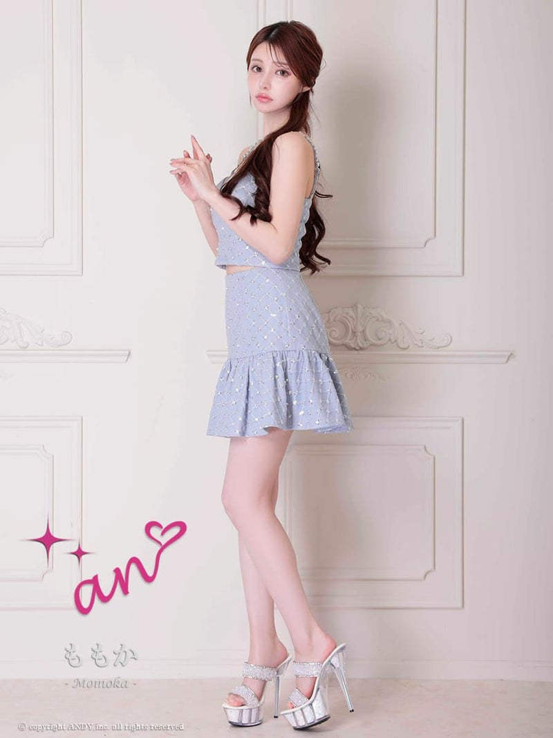 キャバドレス an アン 高級 キャミソール セットアップ バイアスチェック ビジュー ワンカラー フレアミニドレス