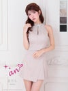 3. [an/アン] 高級 ノースリーブ ワンカラー セットアップ ジップデザイン スパンコール リボン プリーツ フレア ミニドレス
