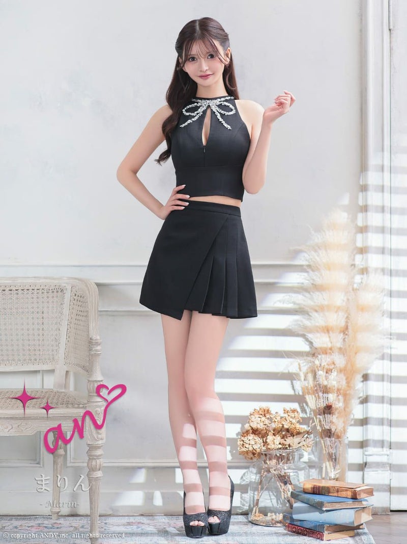 キャバドレス an アン 高級 ノースリーブ ワンカラー セットアップ ジップデザイン スパンコール リボン プリーツ フレア ミニドレス