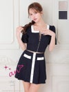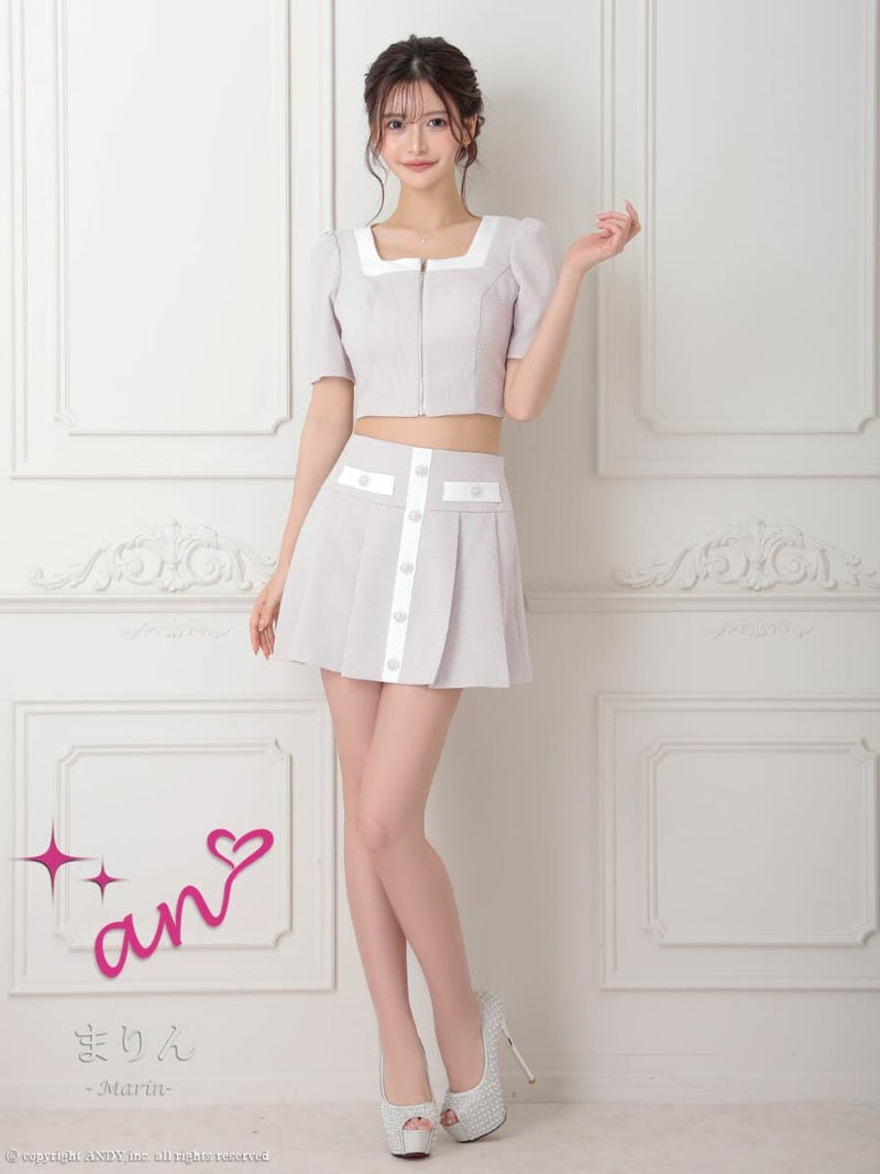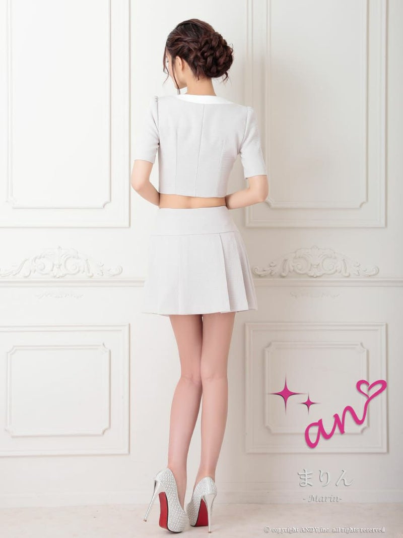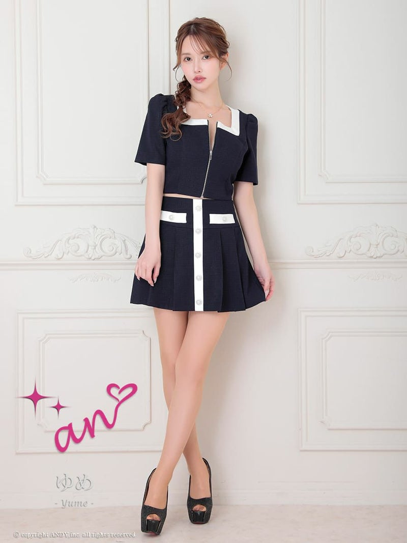 キャバドレス an アン 高級 半袖 セットアップ ツイード ジップ バイカラー プリーツ フレアミニドレス