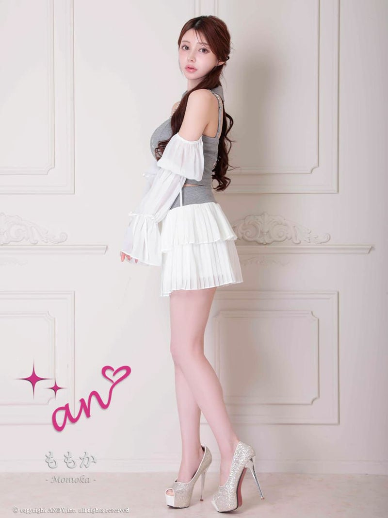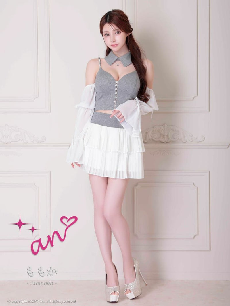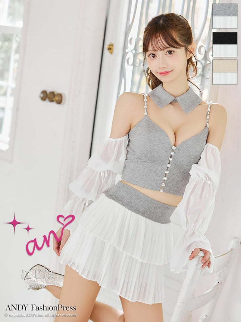 キャバドレス an アン 高級 Aライン ミニドレス 谷間 セットアップ キャミソール 袖あり 襟付き 3way