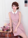 4. [an/アン] 高級 ノースリーブ ジップ ワンカラー ビジュー 襟付き くびれ リボン フレア ミニドレス