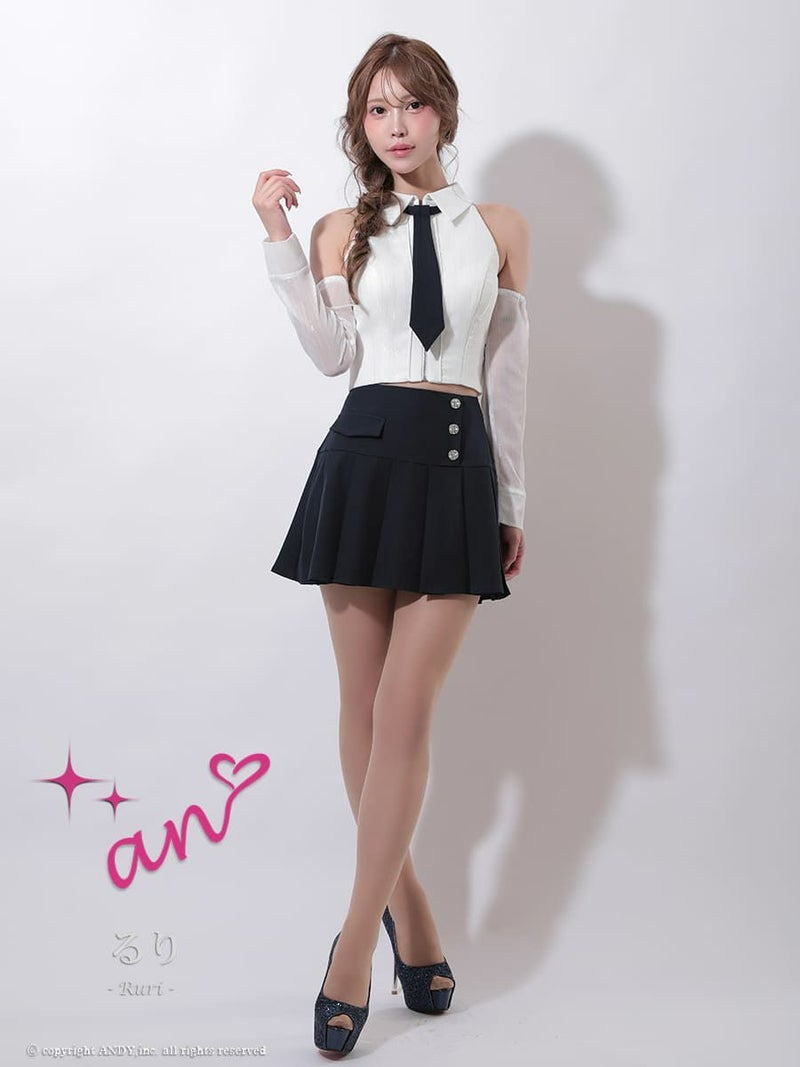 キャバドレス an アン 高級 ノースリーブ 袖あり 4way バイカラー セットアップ ジップ ネクタイ プリーツ フレア ミニドレス