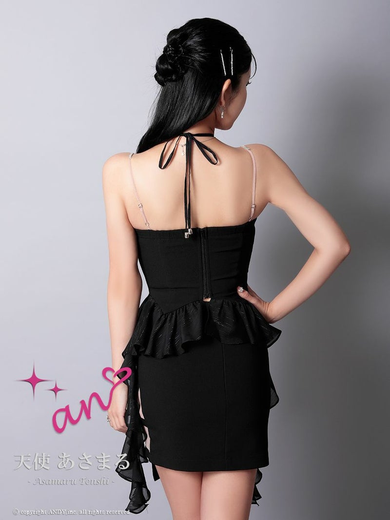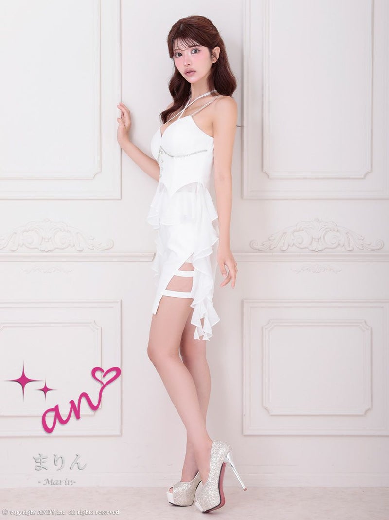 キャバドレス an アン 高級 ブランド タイトミニドレス 谷間 セットアップ キャミソール クロスネックリボン 2way コルセット風 フリル ビジュー