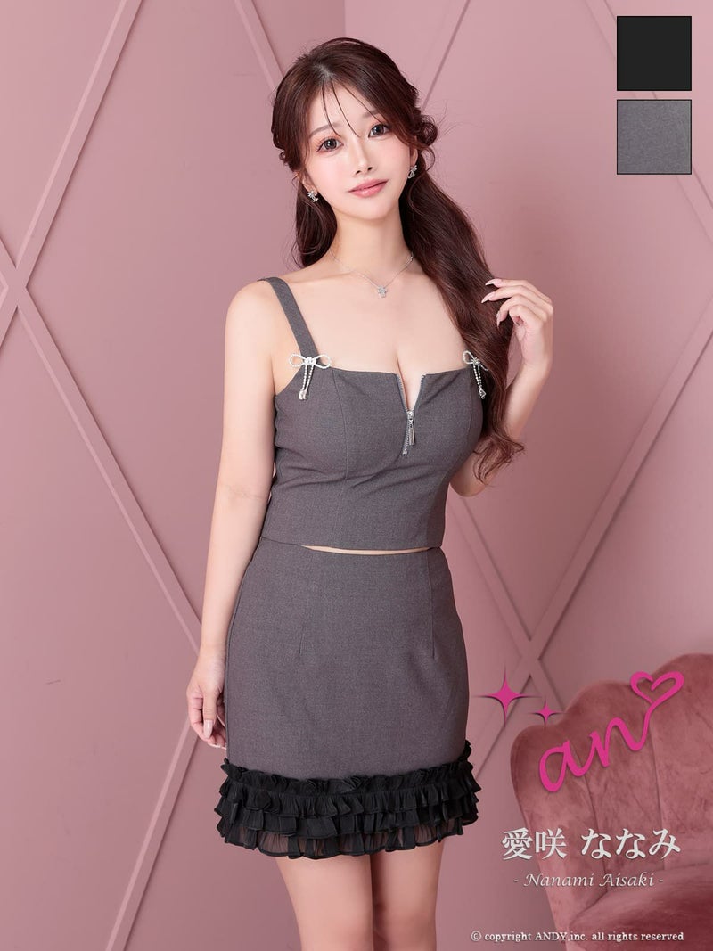 キャバドレス an アン 高級 ブランド タイトミニドレス 谷間 セットアップ レース キャミソール ジップ フリル リボン