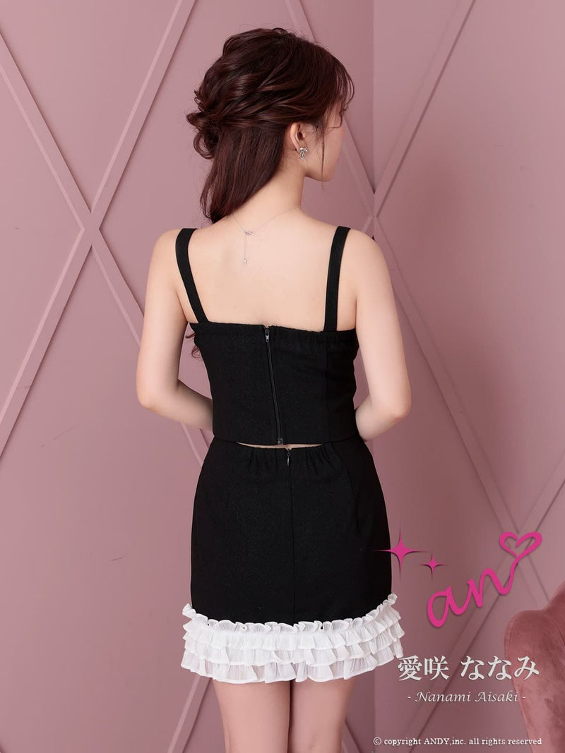5. [an/アン] 高級 ブランド タイトミニドレス 谷間 セットアップ レース キャミソール ジップ フリル リボン