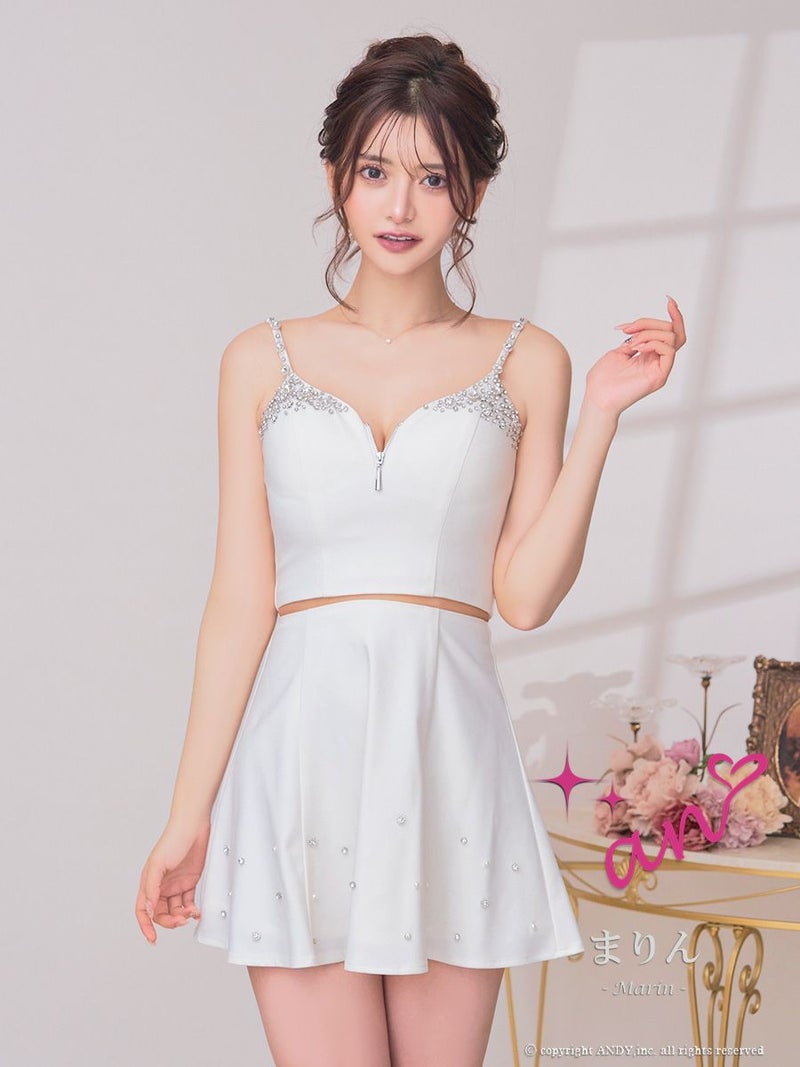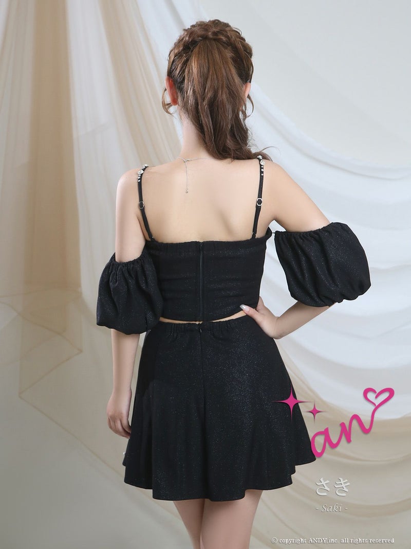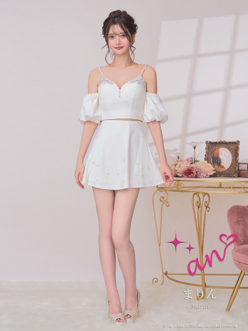 キャバドレス an アン 高級 ブランド Aライン ミニドレス 谷間 セットアップ 肩出し ジップ パフスリーブ 2way ビジュー キャバドレス