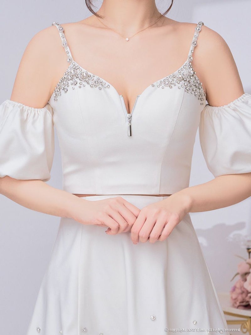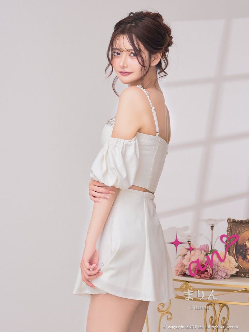 3. [an/アン] 高級 ブランド Aライン ミニドレス 谷間 セットアップ 肩出し ジップ パフスリーブ 2way ビジュー キャバドレス