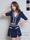 バイカラーラインがスタイリッシュ☆ [AndyGLAMOROUS/アンディグラマラス] 高級 ジップ セットアップ 袖あり ファスナースリット フレアミニドレス