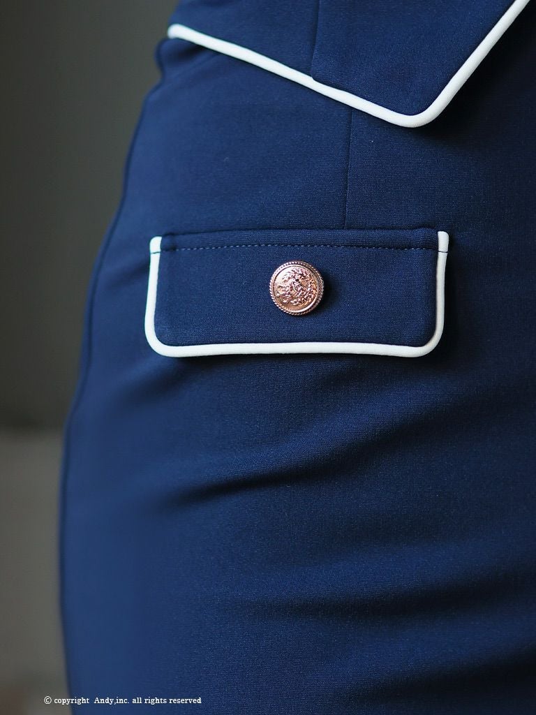 4. [AndyGLAMOROUS/アンディグラマラス] 高級 ノースリーブ セットアップ 襟付き ポケット ゴールドボタン タイトミニドレス