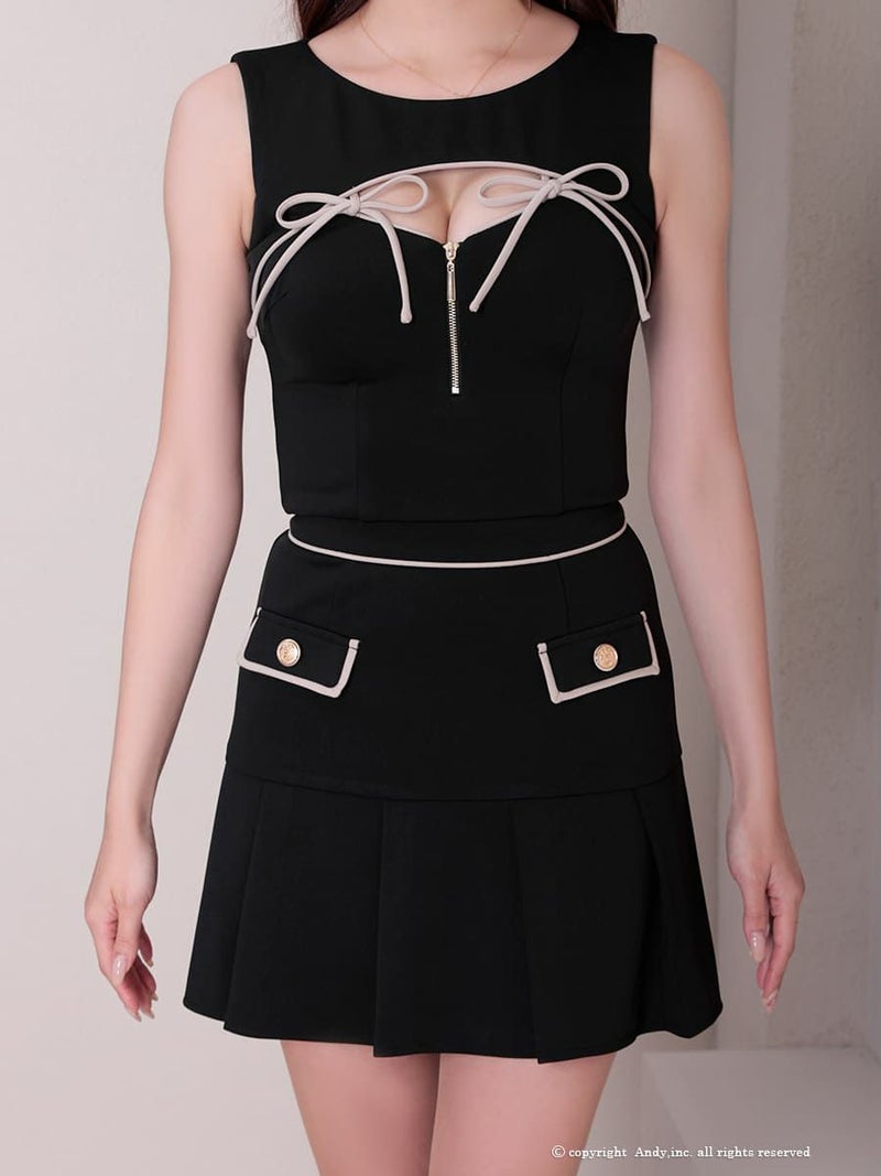 大人ガーリーな可愛さ★ [AndyGLAMOROUS/アンディグラマラス] 高級 セットアップ ジップ リボンノースリーブ ポケット 谷間魅せ フレアミニドレス