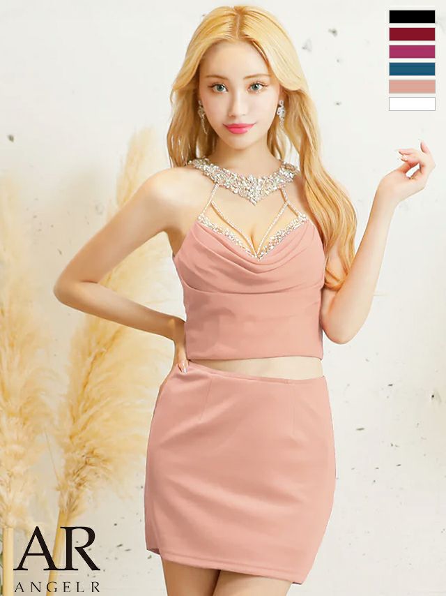 4. SALE [Angel-R/エンジェルアール] 高級デコルテビジューバストドレープセットアップホルターネックマイクロタイトミニドレス