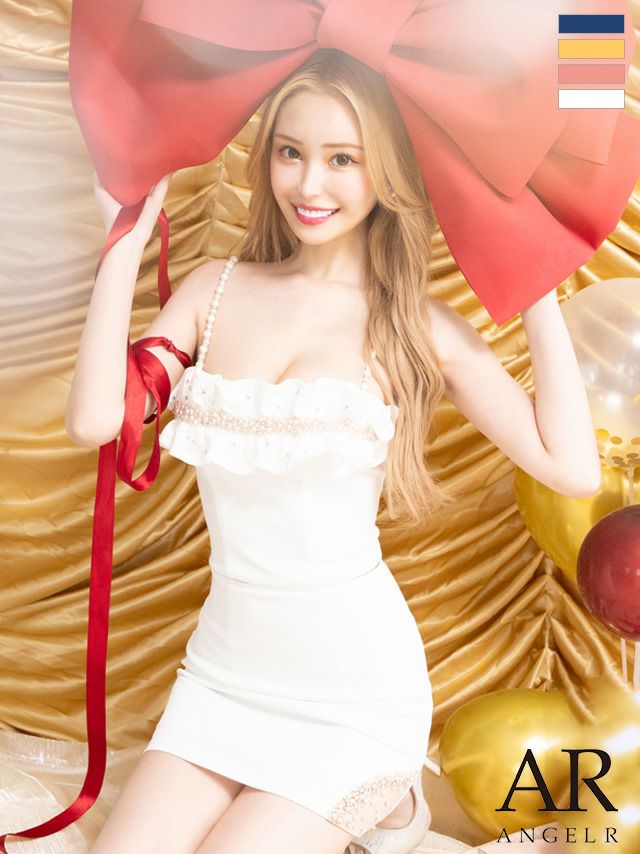 キャバドレス ミニドレス Angel-R エンジェルアール  高級キャミソールセットアップビジューパールバストフリルタイトミニドレス