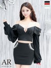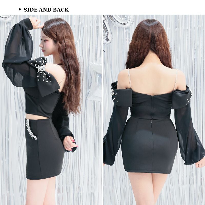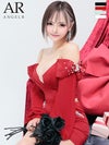3. [Angel-R/エンジェルアール] 高級 肩出し 二の腕カバー セットアップ パールビジュー リボン 長袖 袖あり バストカット 谷間魅せ タイトミニドレス