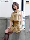 上品な可愛さを引き立てる♡ [Angel-R/エンジェルアール] 高級 ブランド Aラインミニドレス 胸元カバー ホルターネック セットアップ 襟付き チェーン リボン プリーツ (せな着用)