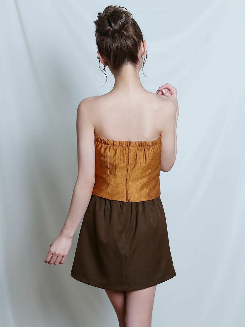 5. [Angel-R/エンジェルアール] 高級 ブランド Aラインミニドレス セットアップ ベア キャミソール 2way タックデザイン バイカラー