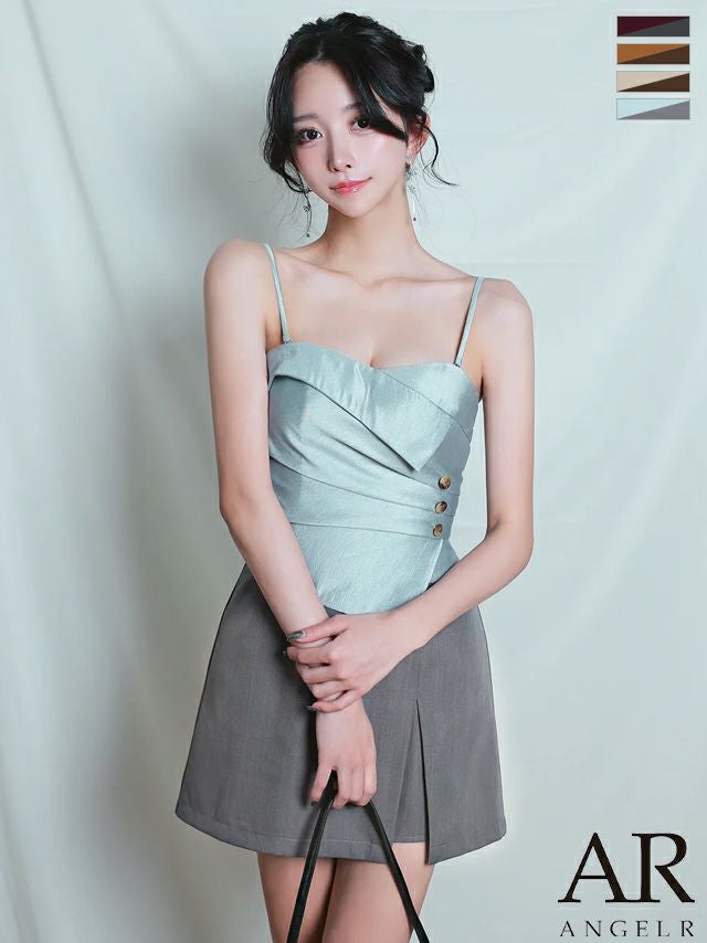 5. [Angel-R/エンジェルアール] 高級 ブランド Aラインミニドレス セットアップ ベア キャミソール 2way タックデザイン バイカラー