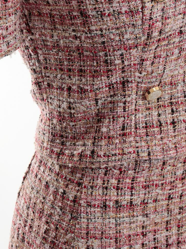 5. [DEA.byROBEdeFLEURS/ディアバイローブドフルール] 高級ハートカットフロントボタンラメツイードセットアップ半袖タイト膝丈ドレス