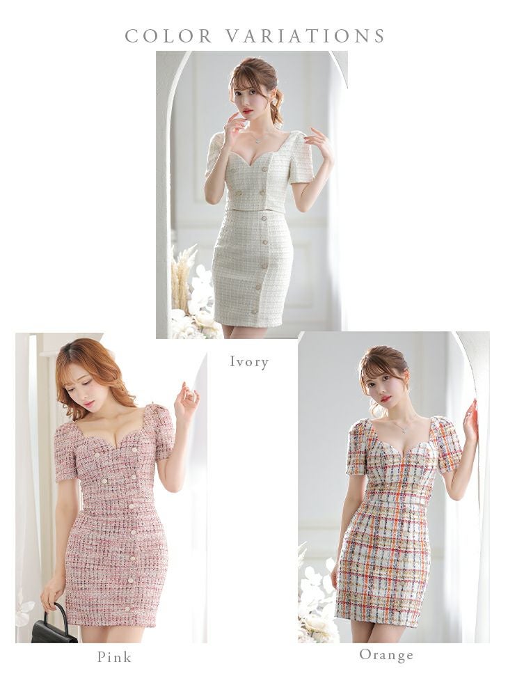 人気のセットアップ☆ [DEA.byROBEdeFLEURS/ディアバイローブドフルール] 高級ハートカットフロントボタンラメツイードセットアップ半袖タイト膝丈ドレス