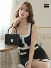 5. [DEA.byROBEdeFLEURS/ディアバイローブドフルール] 高級ラメツイードチェック柄ボタンセットアップノースリーブタイトミニドレス