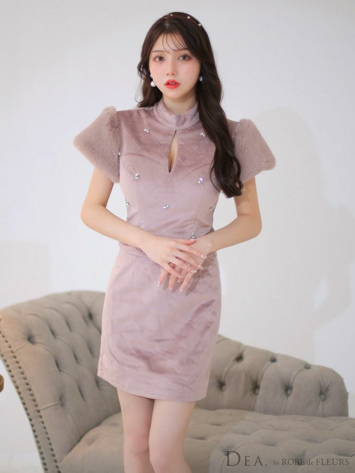 4. [DEA.byROBEdeFLEURS/ディアバイローブドフルール] 高級ファー×ベルベットセットアップ半袖タイトミニドレス