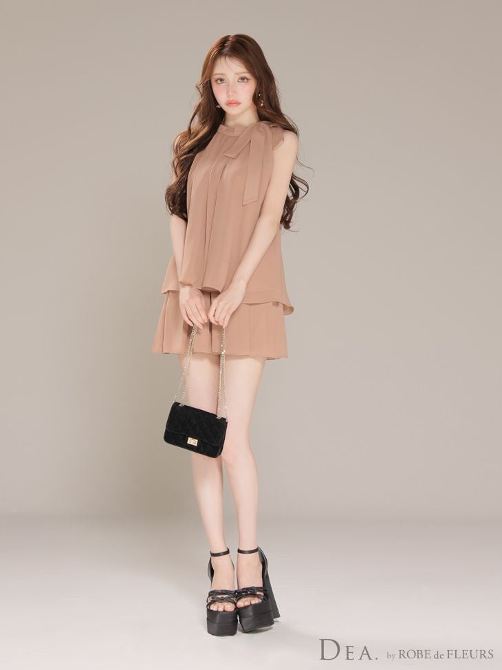 ふんわりシフォンが女性らしい♡ [DEA.byROBEdeFLEURS/ディアバイローブドフルール] 高級 ブランド Aラインミニドレス セットアップ ノースリーブ シフォン 胸元カバー シンプル