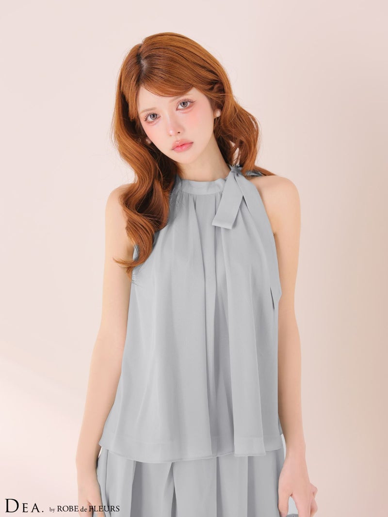 大人気ドレスから新色登場♡ [DEA.byROBEdeFLEURS/ディアバイローブドフルール] 高級 ブランド Aラインミニドレス セットアップ ノースリーブ シフォン 胸元カバー シンプル