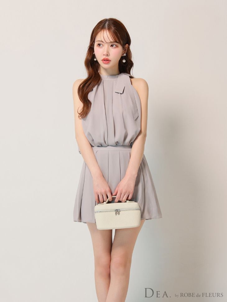 4. [DEA.byROBEdeFLEURS/ディアバイローブドフルール] 高級 ブランド Aラインミニドレス セットアップ ノースリーブ シフォン 胸元カバー シンプル
