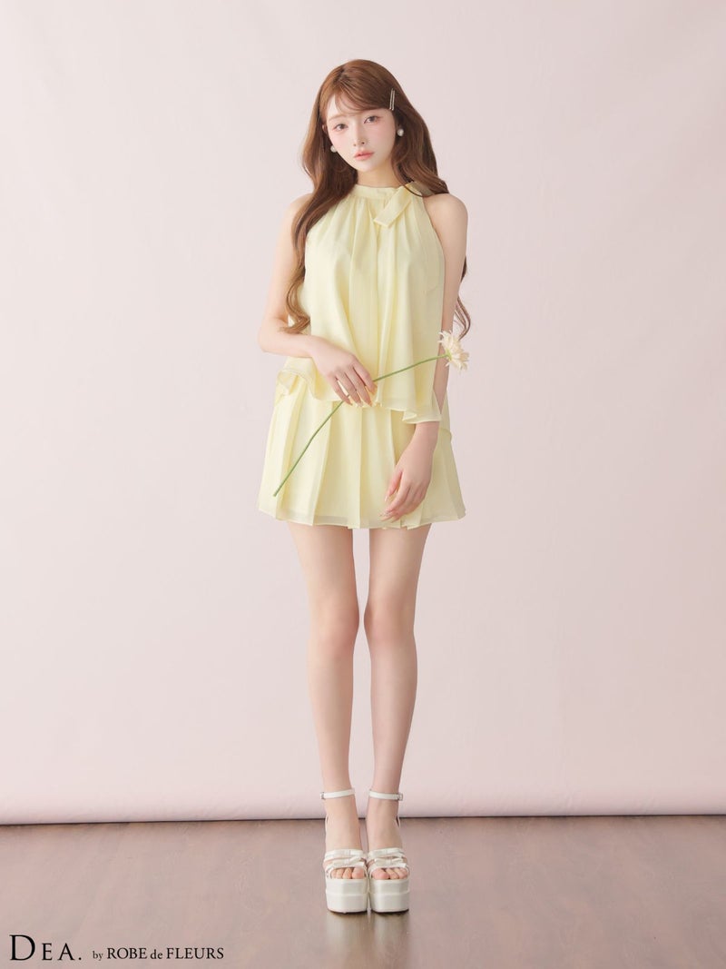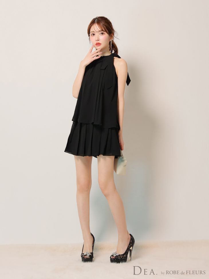 5. [DEA.byROBEdeFLEURS/ディアバイローブドフルール] 高級 ブランド Aラインミニドレス セットアップ ノースリーブ シフォン 胸元カバー シンプル