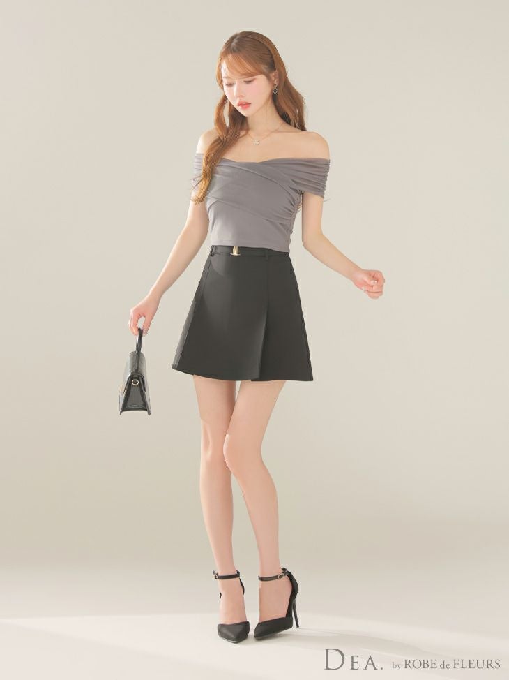 デコルテを綺麗に魅せるデザイン☆ [DEA.byROBEdeFLEURS/ディアバイローブドフルール] 高級 セットアップ ギャザー オフショルダー ウエストベルト チュール カジュアル フレアミニドレス
